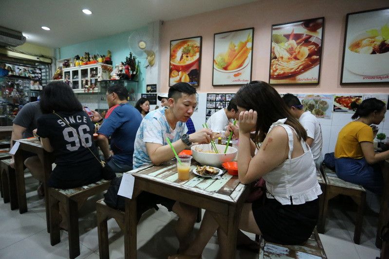 200 metres down the Soi, you find the street connecting Soi 5 and Soi 7, and that’s where you find more for your evening satisfaction. And your preferred options for the evening should include Pi Aor , which specializes in Tom Yam Kung / Pla (Shrimp / Fish Tom Yam soup). Pi Aor offers seating in side but during peak hours, you are likely to wait on a queue for a few minutes.